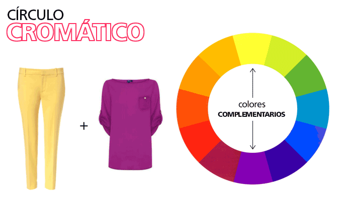 Podemos hacer uso del círculo cromático para conjuntar nuestra ropa. Si por ejemplo unimos dos colores adyacentes, tendremos una buena combinación seguro, ya que son colores similares o distintos tonos de un mismo color y siempre quedará bien. Y también se puede combinar los que están opuestos en el círculo, aunque son combinaciones más atrevidas, combinan muy bien.